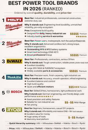 Best Power Tool Brands in 2026: Ranked by Quality, Performance & Price